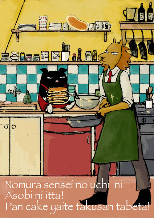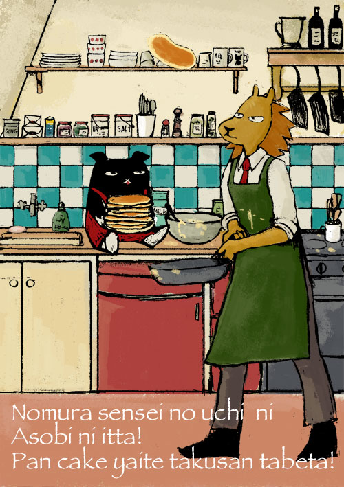 随分前に描いたイラストの構図ですが、描き直しました。(以前はアキちゃん単独でした)
