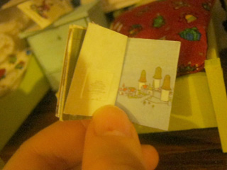 タンタンのベッドの上には、「すてきな3人ぐみ」(大好きな絵本です)の絵本があります。