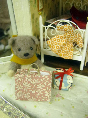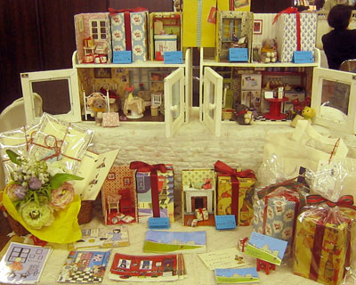 二日目は心機一転し、自分は自分!と開き直り、ミニチュアとは関係ない、絵はがきやレターセットも置いたりし、私らしさをアピールしたディスプレイにしました。