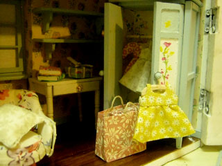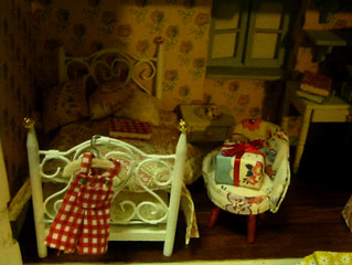 ワンピースとオーバーオール、ベッドカバーに使った布地は、今回のイギリス旅行で買ったもの。