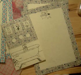 前にイベント販売用に作ったレターセットのイラストのようなバスルーム・・・